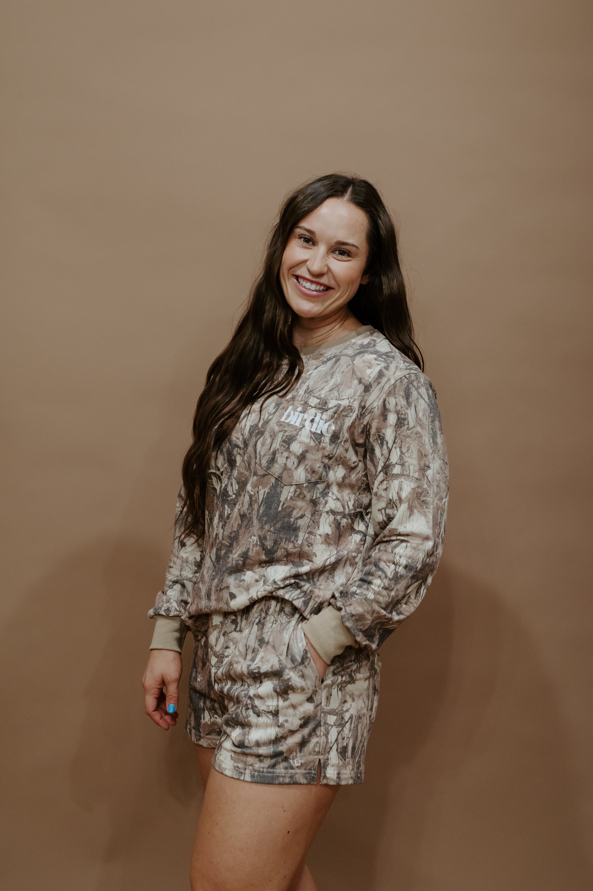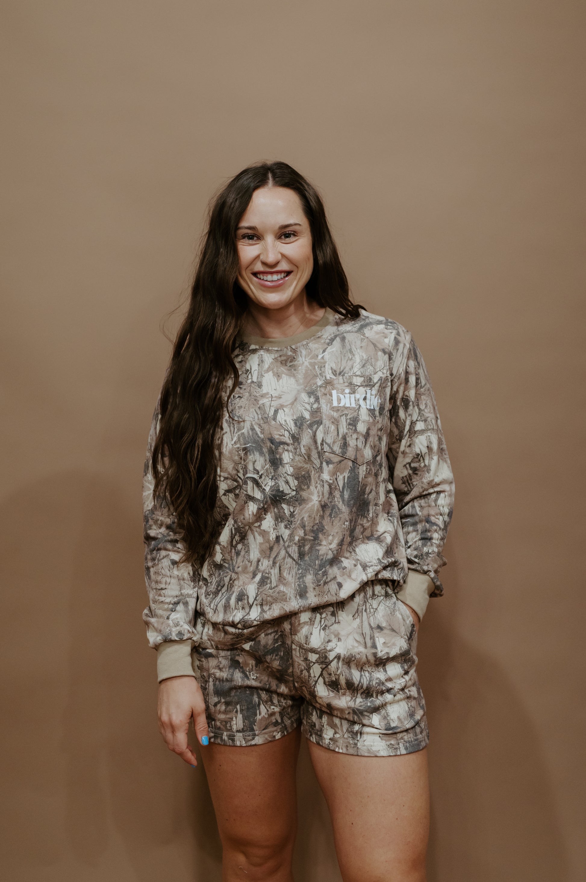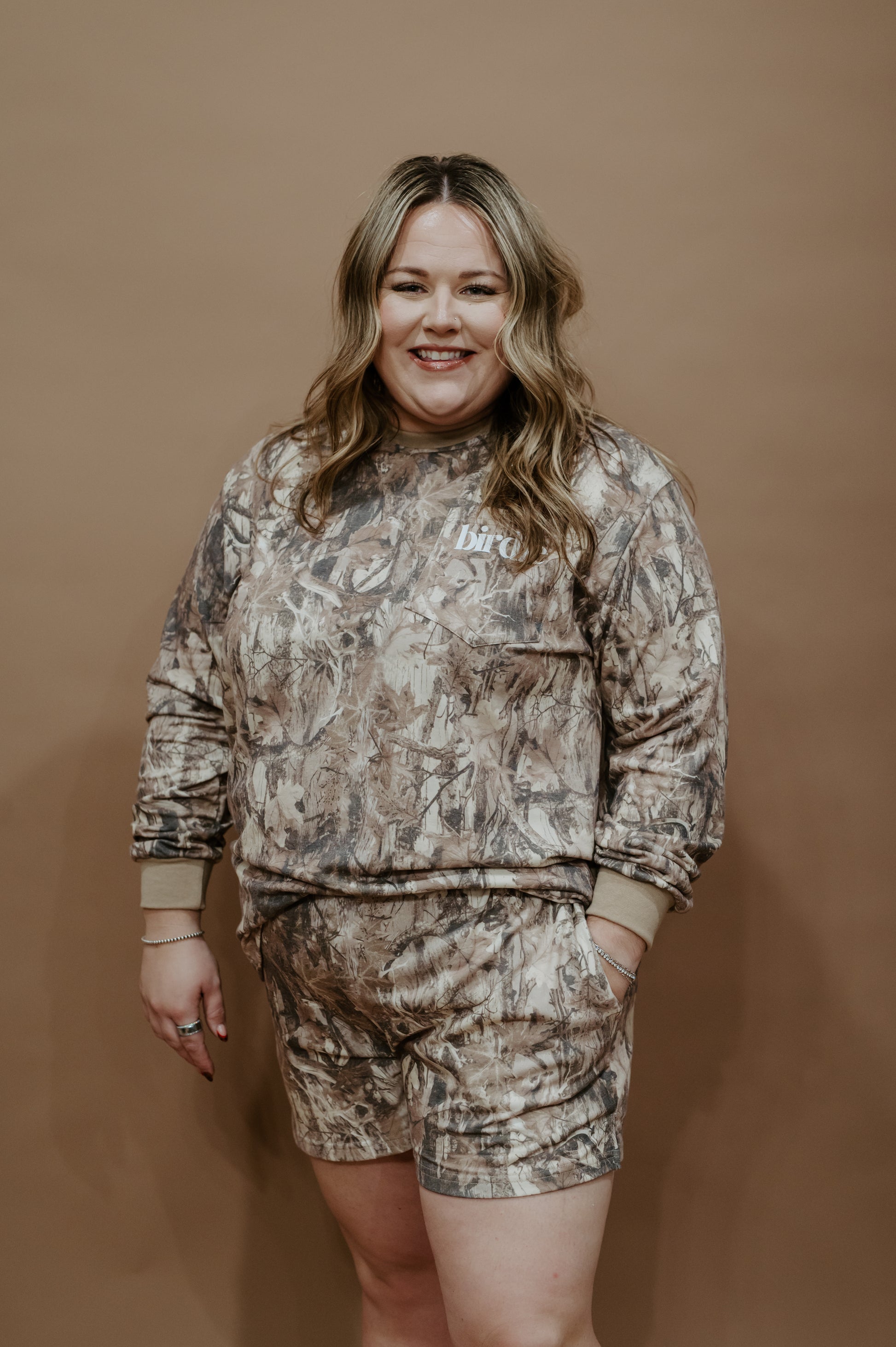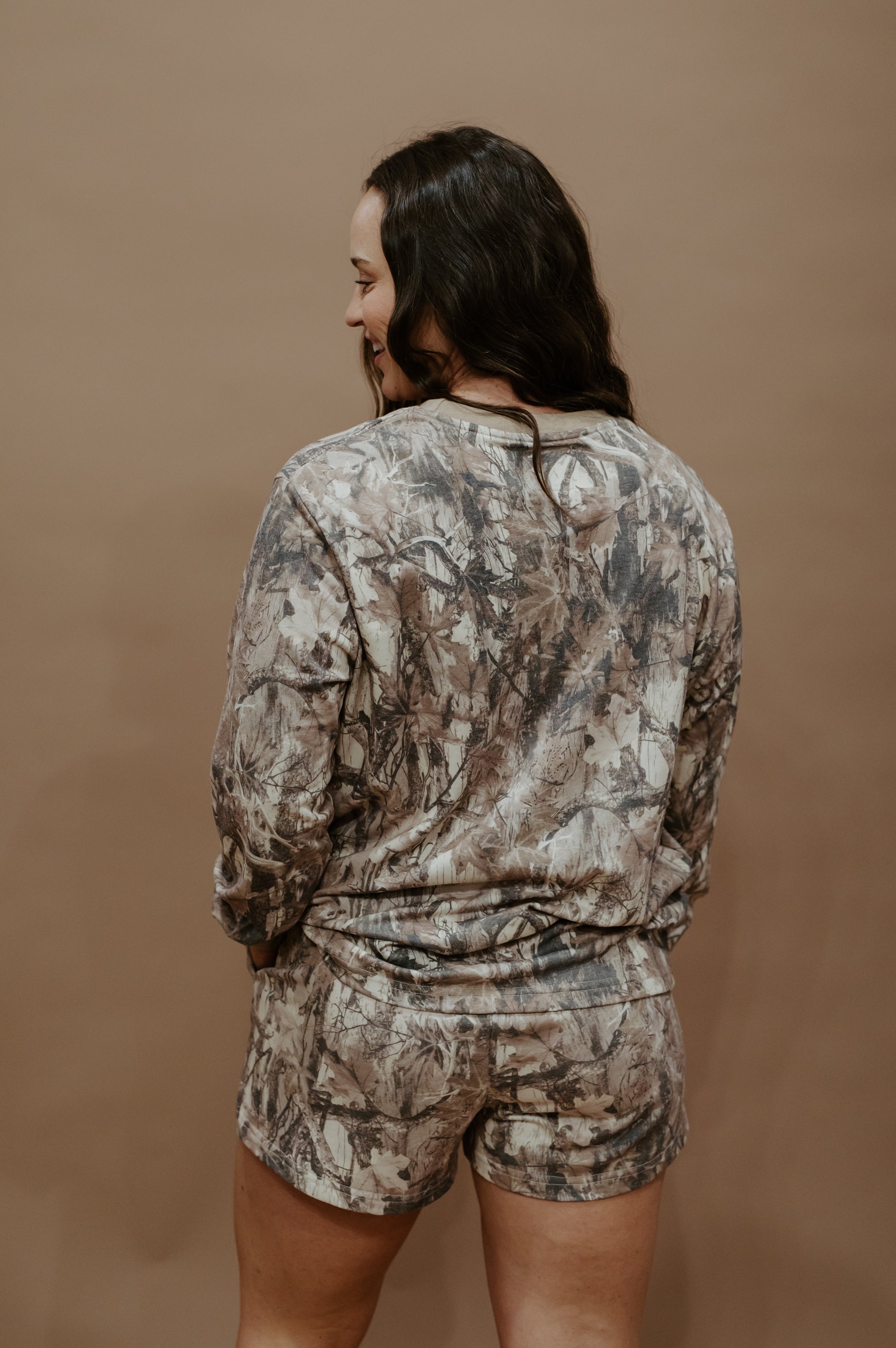For the girl who’s as comfortable in the woods as she is in town, the Backwoods Babe Set delivers that effortless mix of cozy and cool. Featuring a relaxed-fit long sleeve and matching shorts in a rugged camo print, this set is made for laid-back days, bonfire nights, or just bringing that outdoorsy vibe wherever you go. With soft fabric, roomy pockets, and a lived-in feel, it’s the perfect combo of casual comfort and country-girl edge.