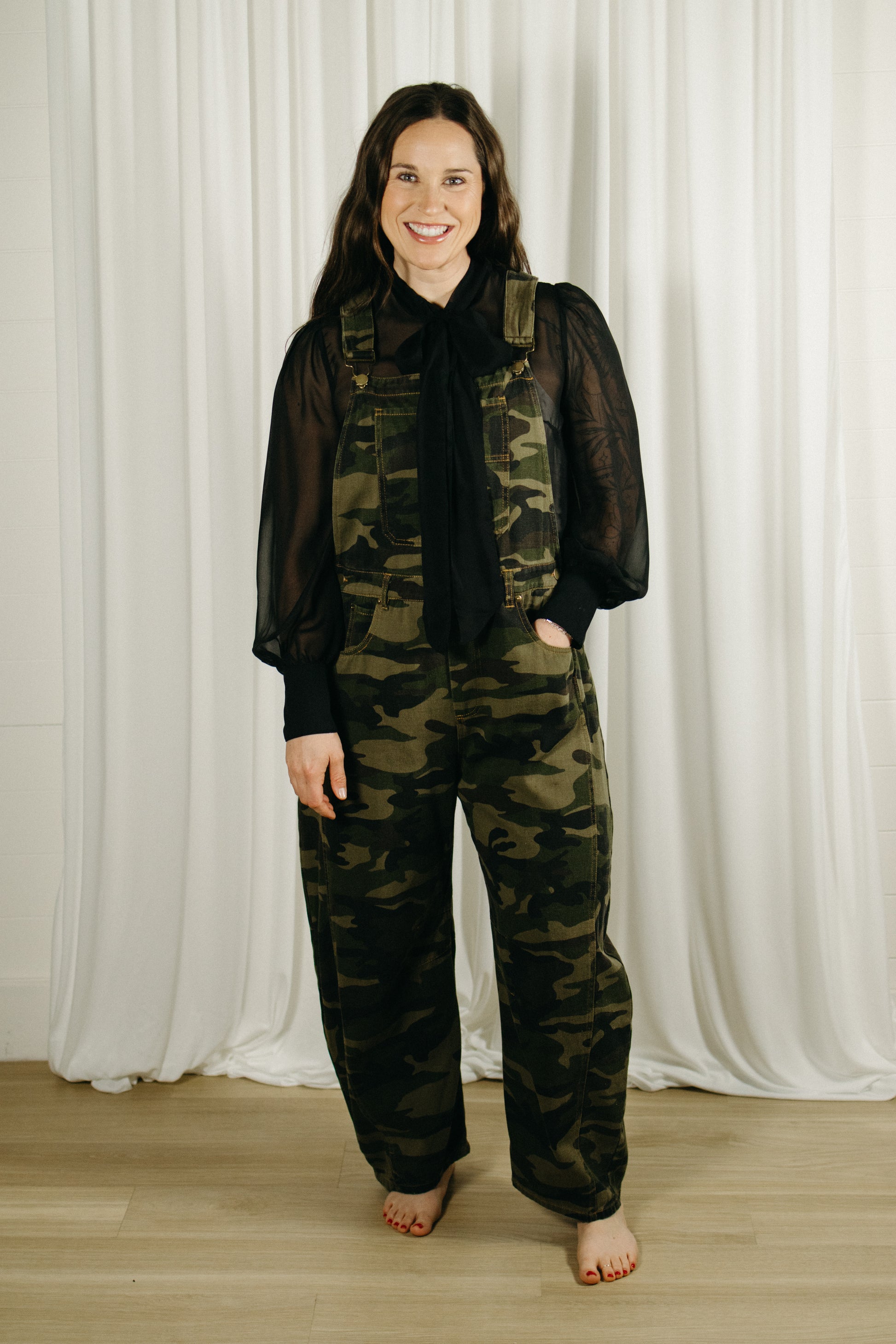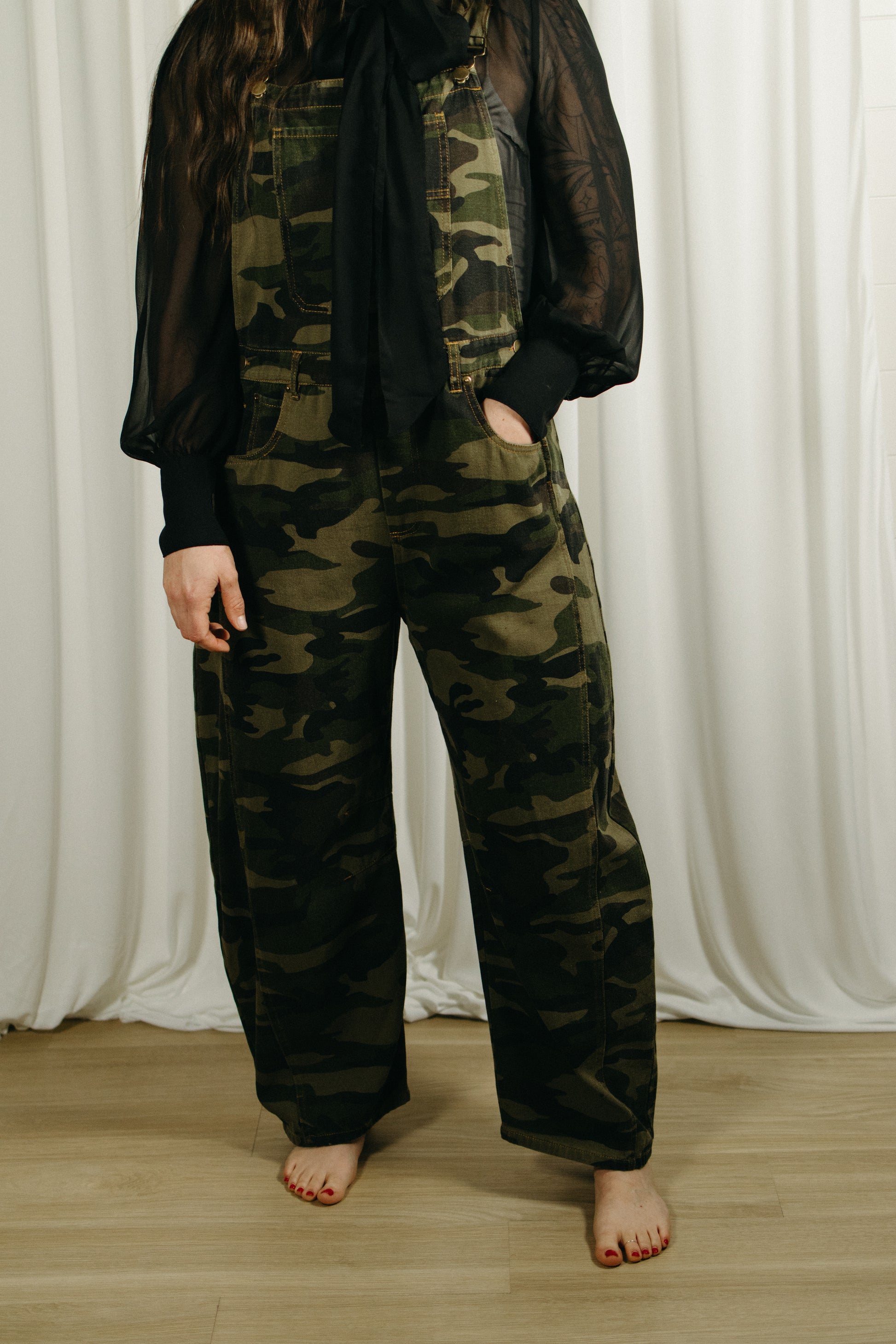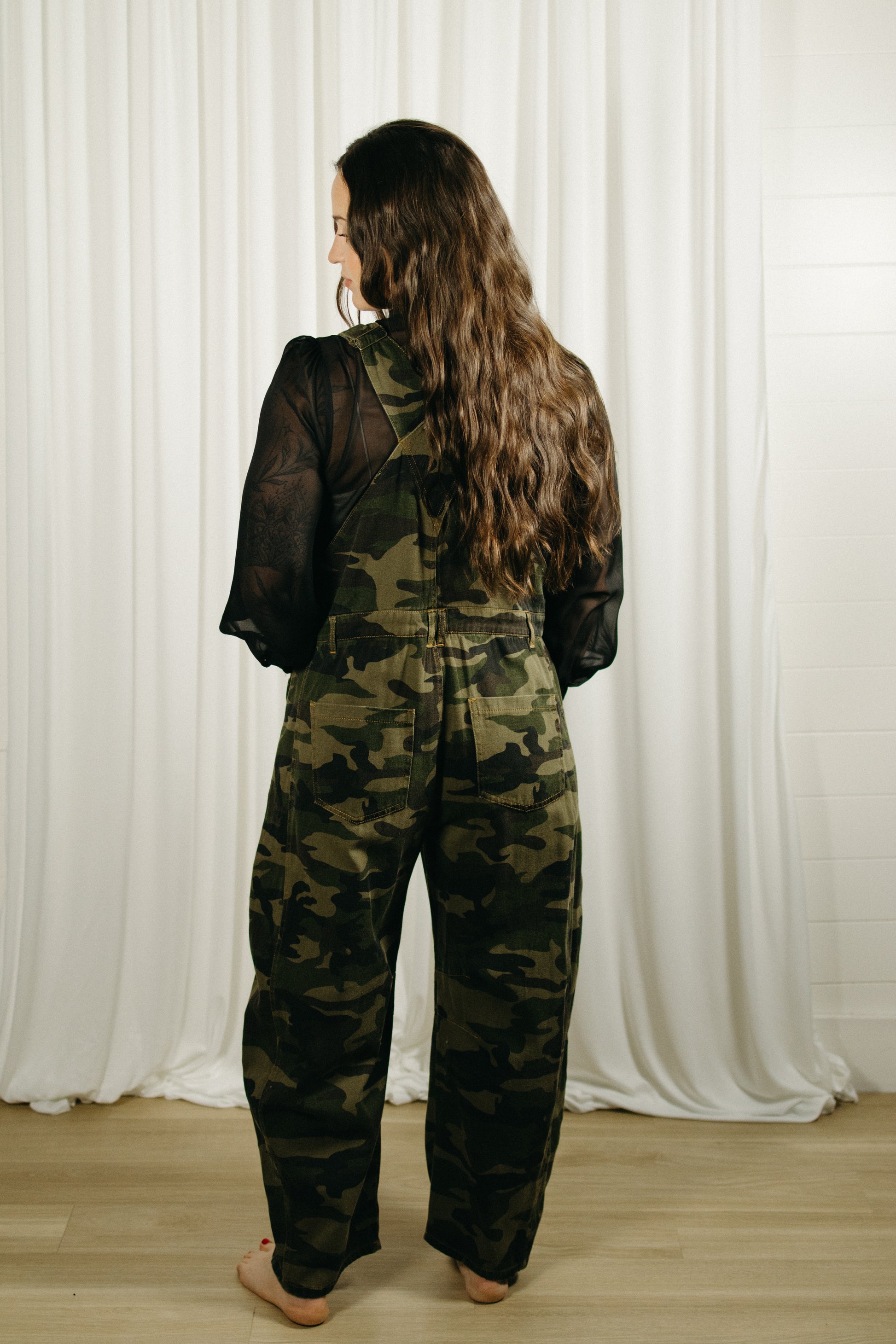 Meet the Backwoods Barrel Overalls — made for off-duty days, backroad adventures, and looking cute while doing absolutely nothing. These camo overalls feature a relaxed barrel-leg fit that’s comfy, cool, and effortlessly on trend. Easy to layer over tees, tanks, or long sleeves, they bring that laid-back, outdoorsy vibe with a fashion-forward twist.