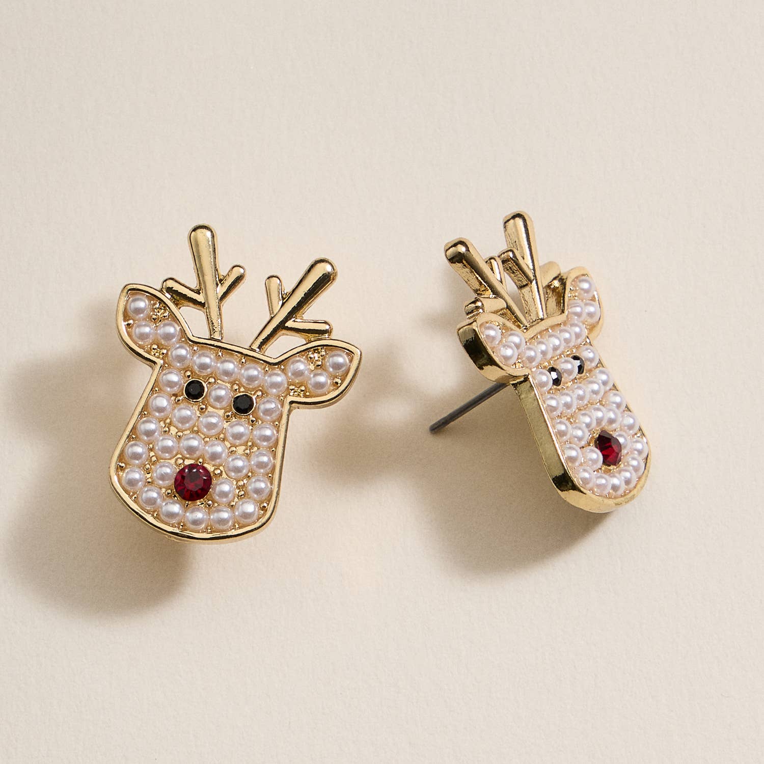 Add some festive charm to your holiday attire with our Christmas Rudolph Head Stud Earrings decorated with pearls. These cute and adorable earrings showcase the iconic Rudolph head, perfect for spreading Christmas cheer wherever you go. The perfect accessory for any Christmas lover!