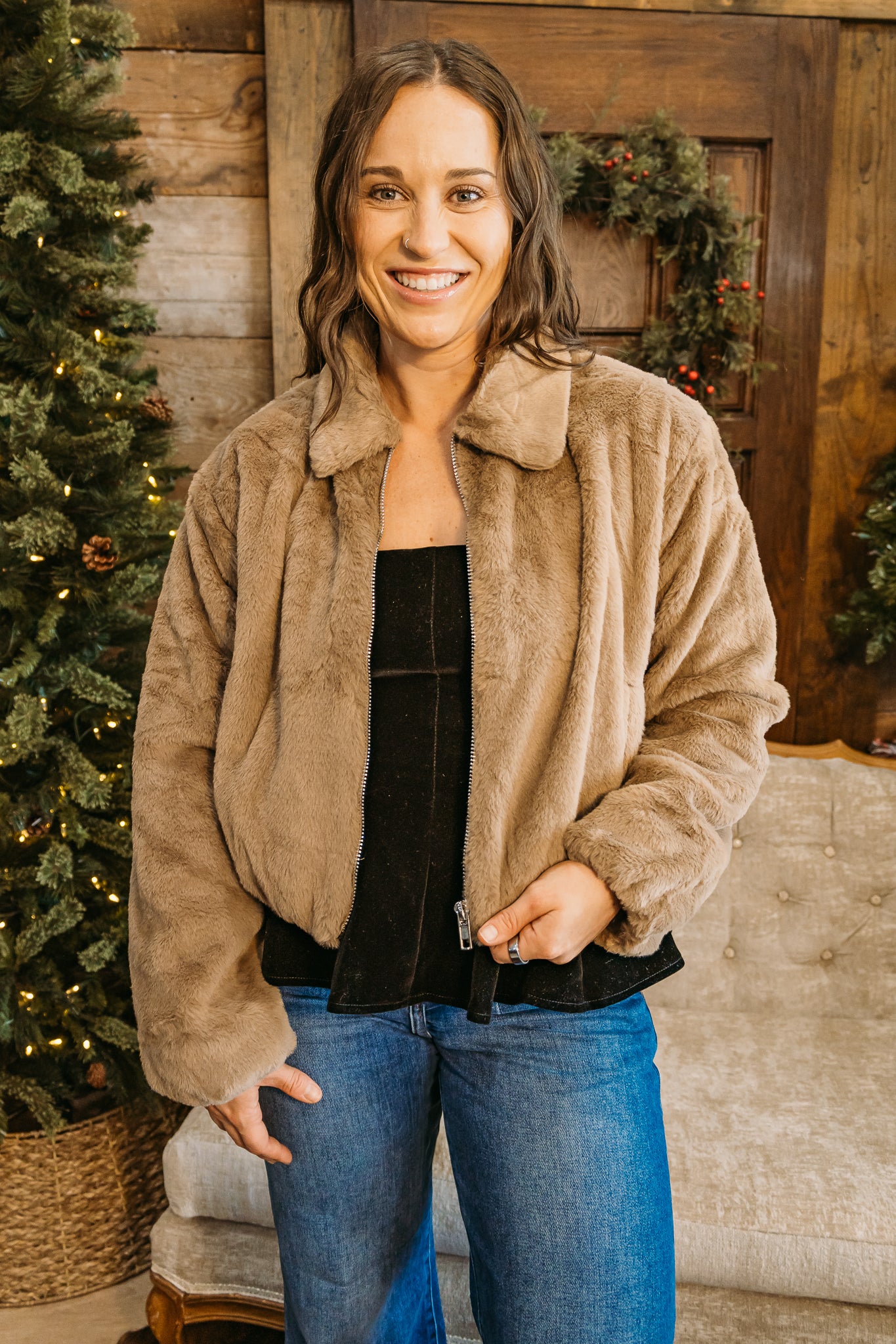 Wrap yourself in Cocoa Kiss — the coziest finishing touch for cooler days. This ultra-soft faux fur jacket features a rich cocoa hue, full zip front, and a relaxed fit that’s easy to layer over anything. Plush, warm, and effortlessly chic, it’s the kind of jacket you’ll grab again and again.