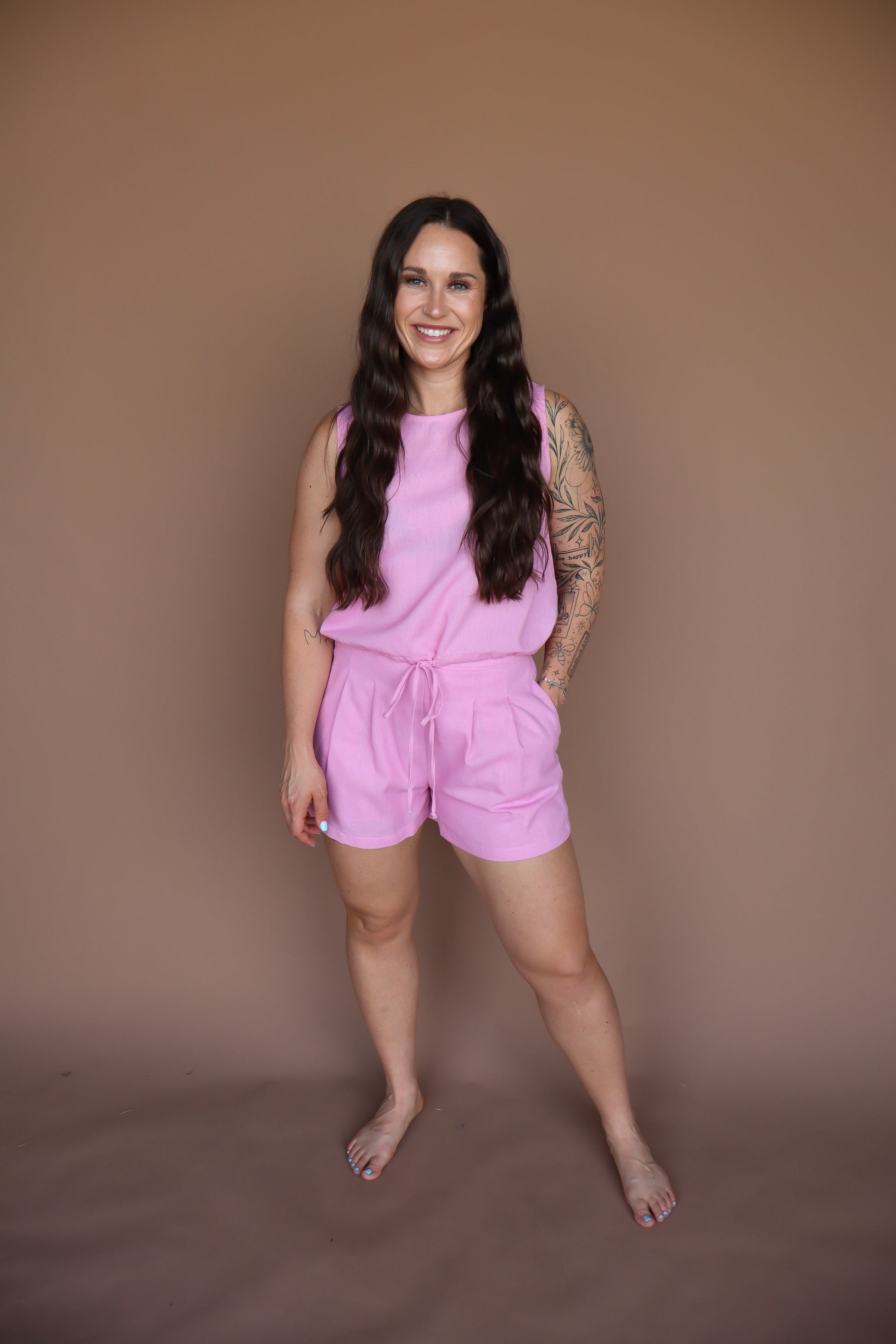 Get wrapped up in the Delightful Dip, a light pink linen set that ties at the waist for a versatile, chic look. Perfect for any occasion, this playful and stylish set adds a touch of whimsy to your wardrobe!!
