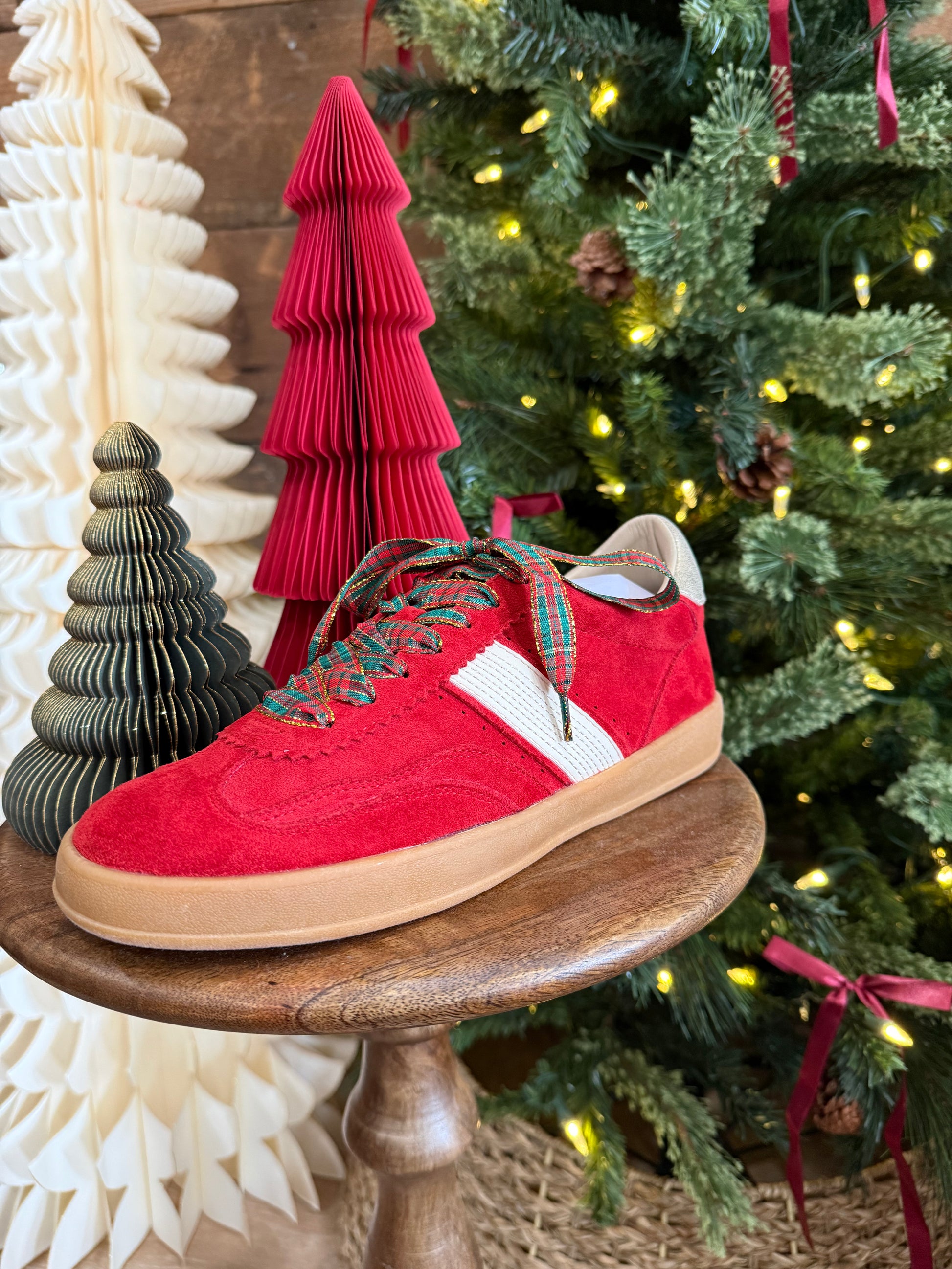 Step into the season with the Dixie in bold red—a sneaker that's ready for any celebration. This festive pair arrives with three lace options: eye-catching plaid for holiday charm, crisp white satin for elegance, and classic white for everyday wear. Mix and match to match your mood, whether you're decking the halls or spreading Valentine's Day love. One shoe, endless style possibilities.