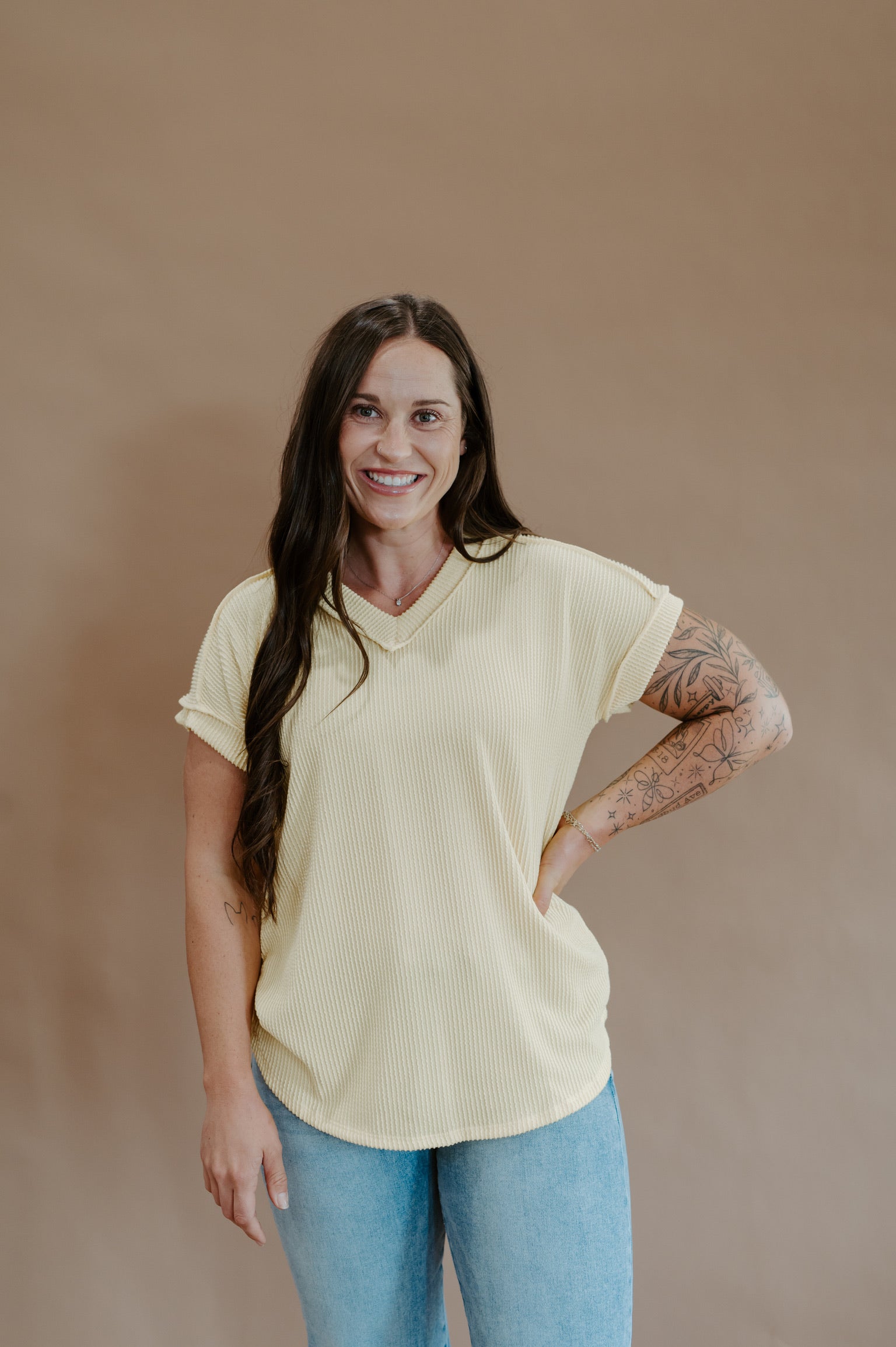 Introducing our Very Best ribbed v neck tee, made from our best selling fabric. With a variety of colors to choose from, this tee will quickly become your go-to for style and comfort. Don't miss out on the best of the best!