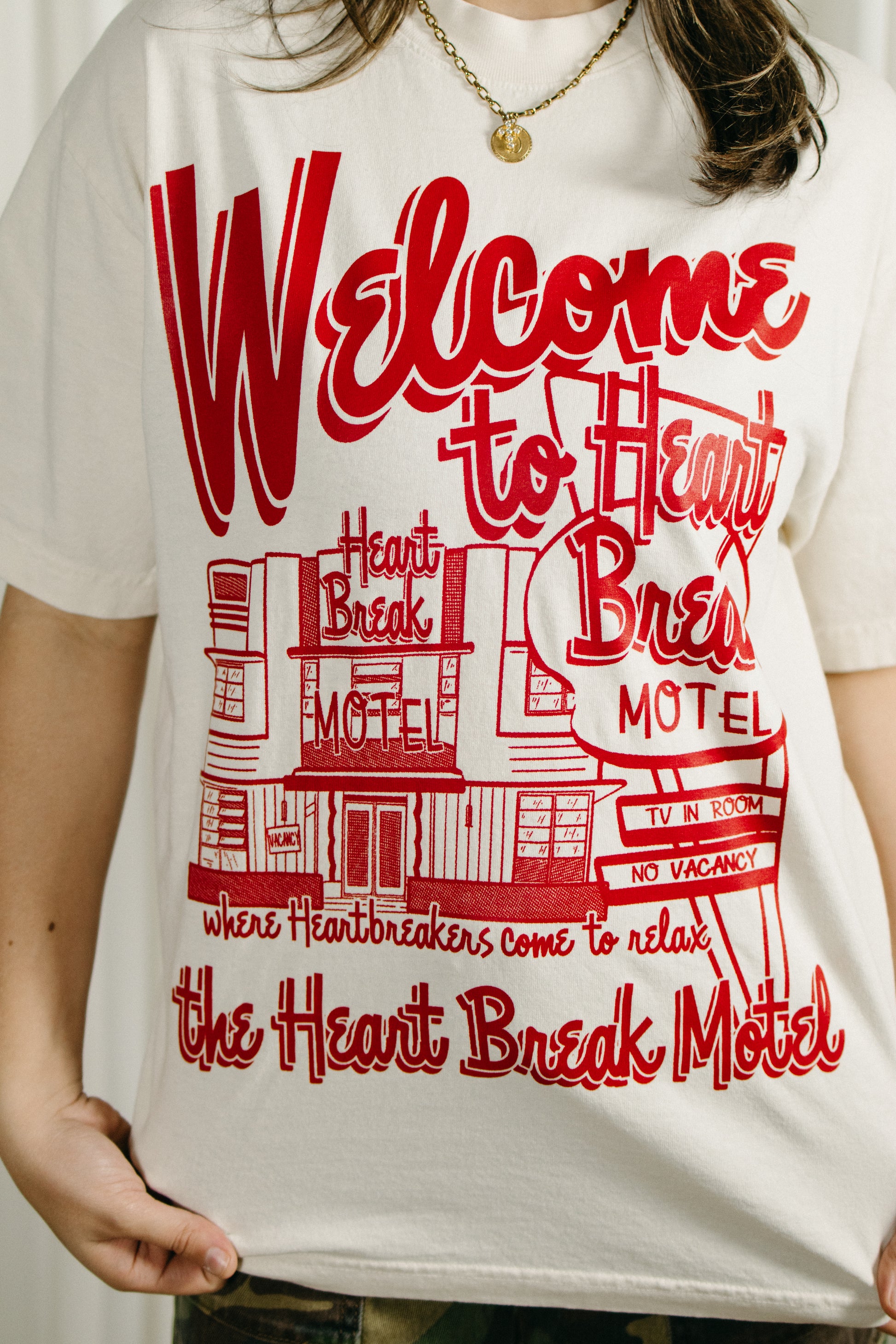 Come and visit Heart Break Motel in this 90's boxy cotton t-shirt that's perfect for Valentine's Day or even to wear year round!