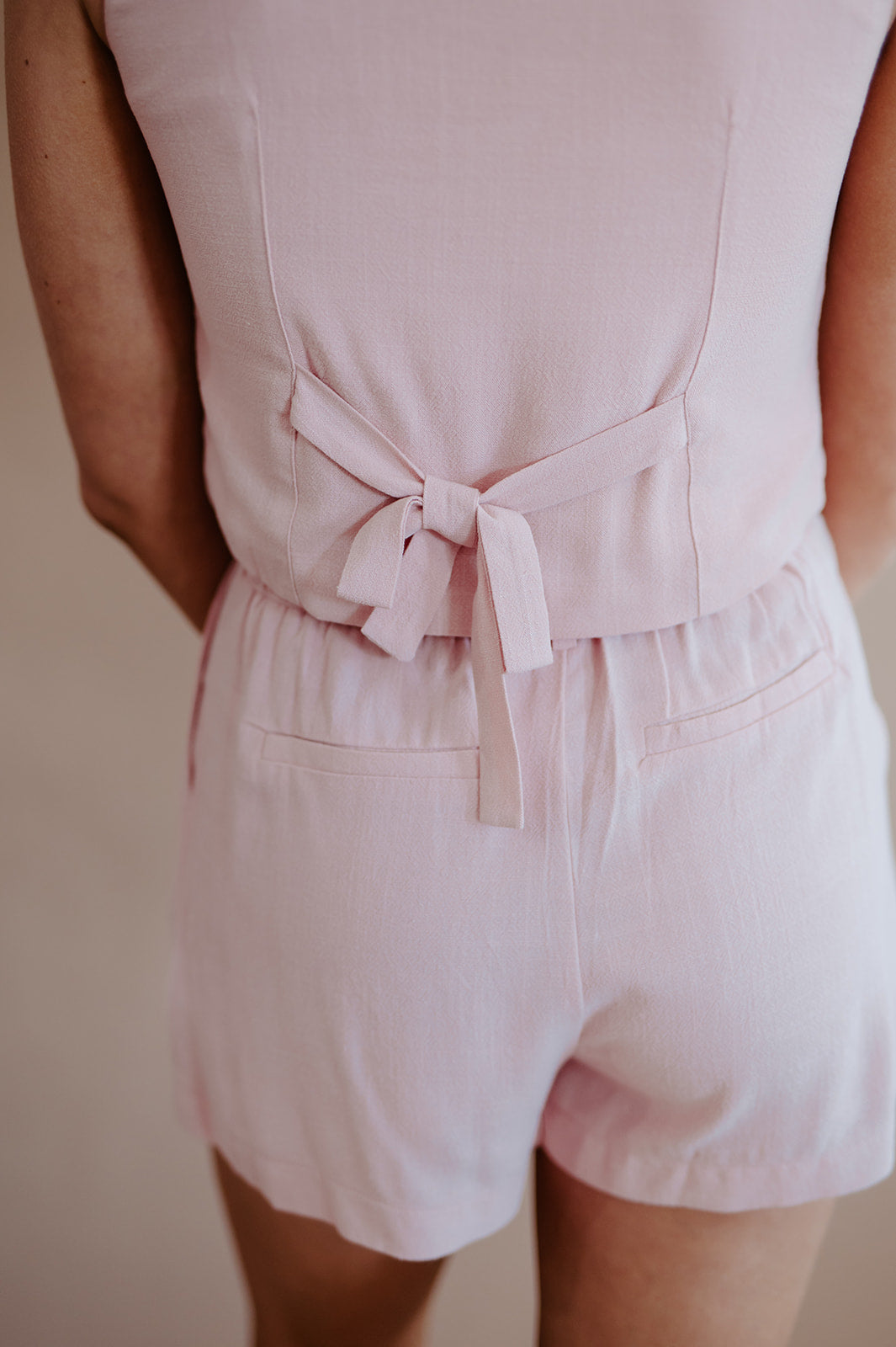 Turn heads and collect compliments in this irresistible Soho Chic set! Crafted from airy rayon linen, the sassy top features a flirtatious button vest. The matching shorts bring the fun with a figure-flattering belted waist and breezy, relaxed legs that keep you cool while looking hot!