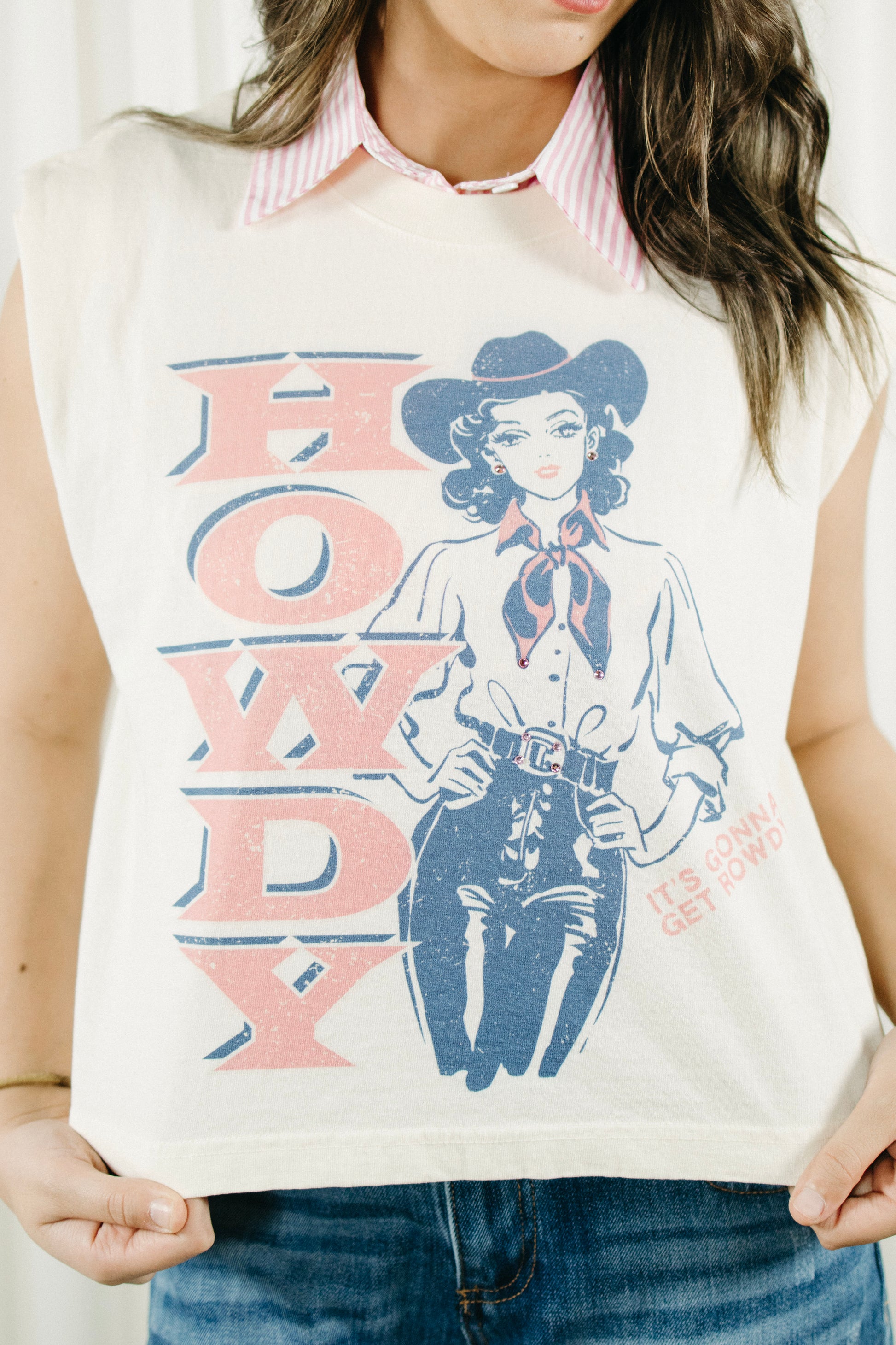 This vintage-inspired muscle tee brings all the bold Western attitude with a retro cowgirl graphic and classic red + blue lettering. She’s got that perfectly worn-in look with a relaxed, easy fit and raw muscle sleeves for an effortless edge.