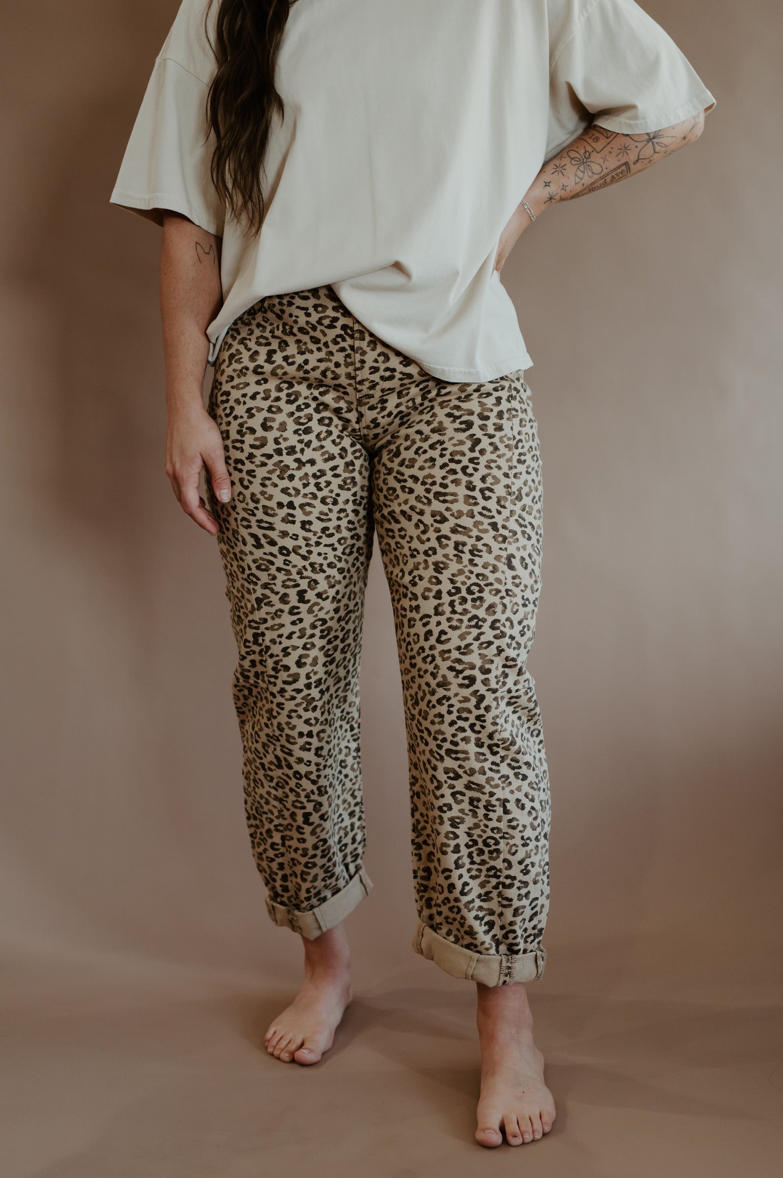 Step out in style with the Julian jeans, featuring our favorite barrel cut in a bold leopard print. These playful jeans combine comfort and flair, perfect for adding a wild touch to your everyday look. Embrace fun fashion with a fit that moves with you!