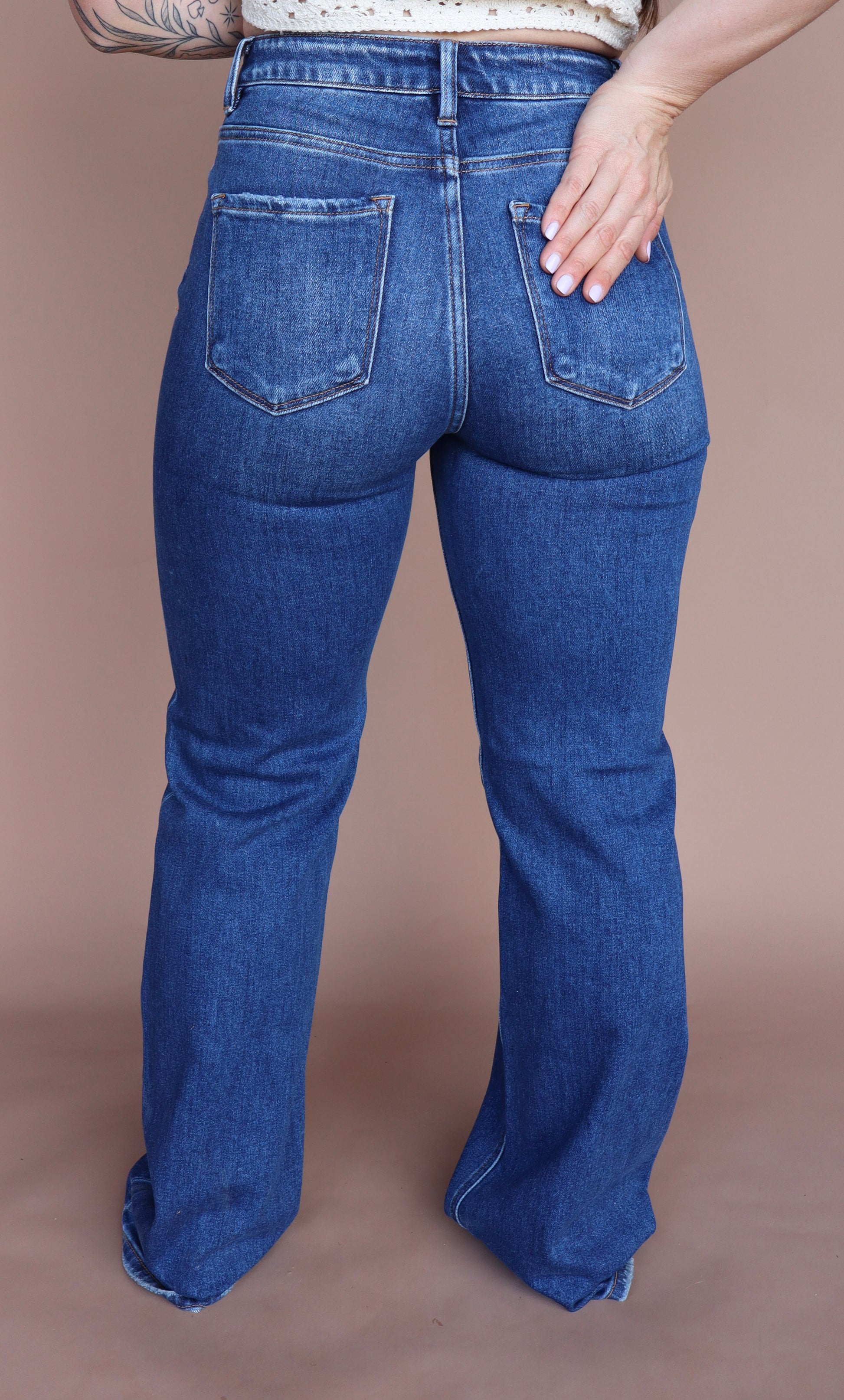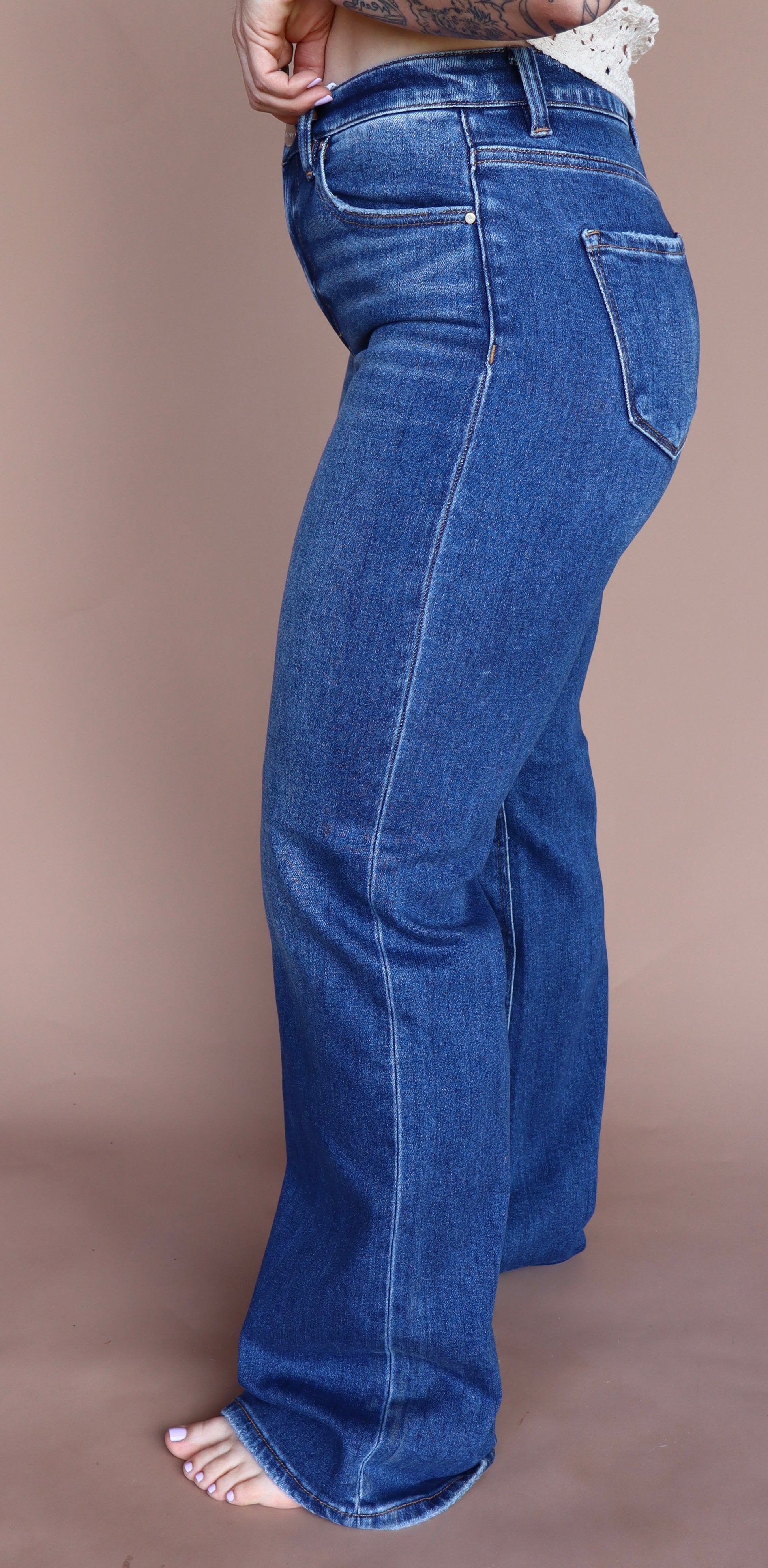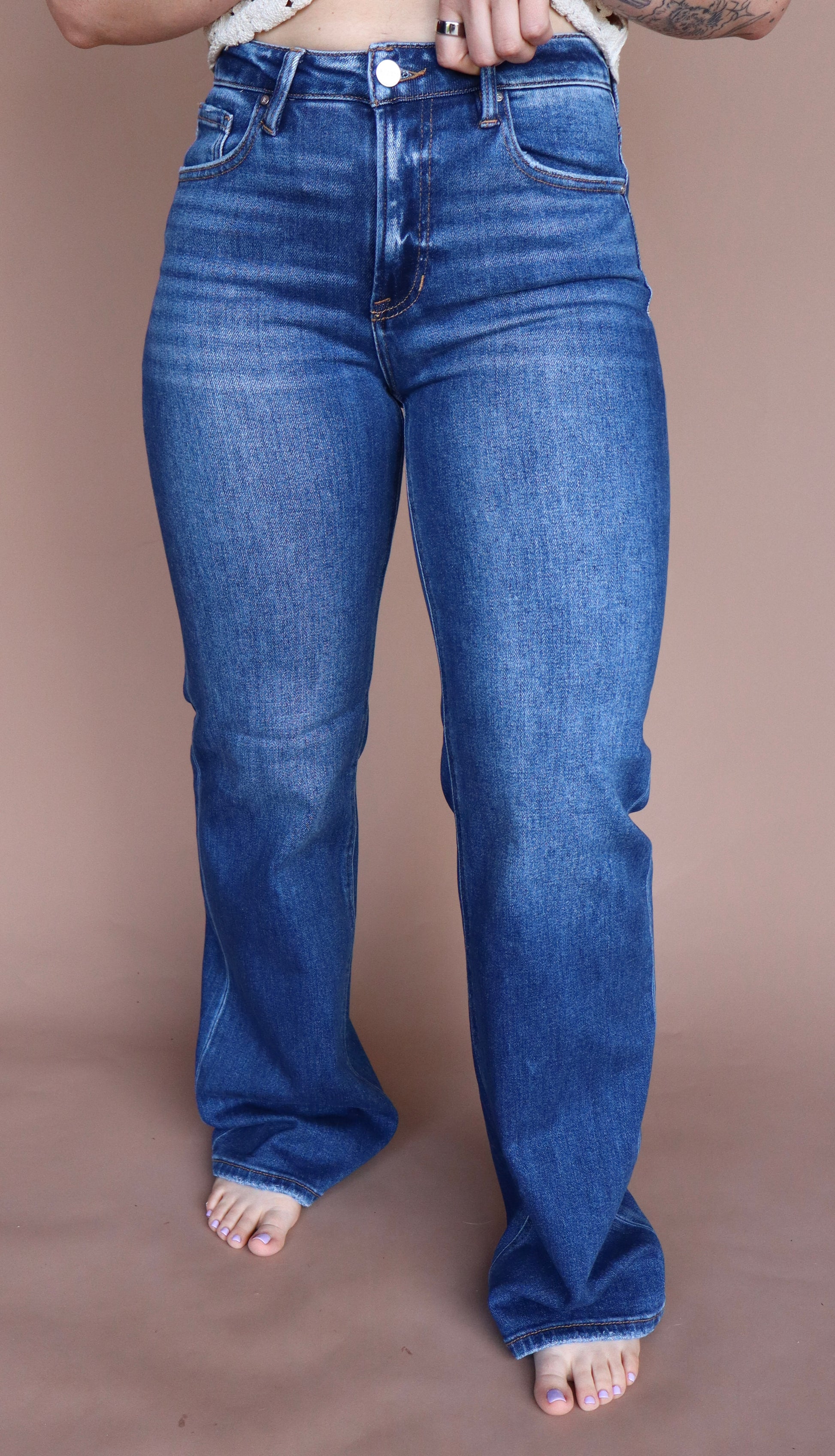 Introducing Lucille, the perfect pair of high rise straight jeans! Whether you're a regular or plus size, these dark wash jeans offer a flattering fit and versatile style. Elevate your denim game with Lucille.