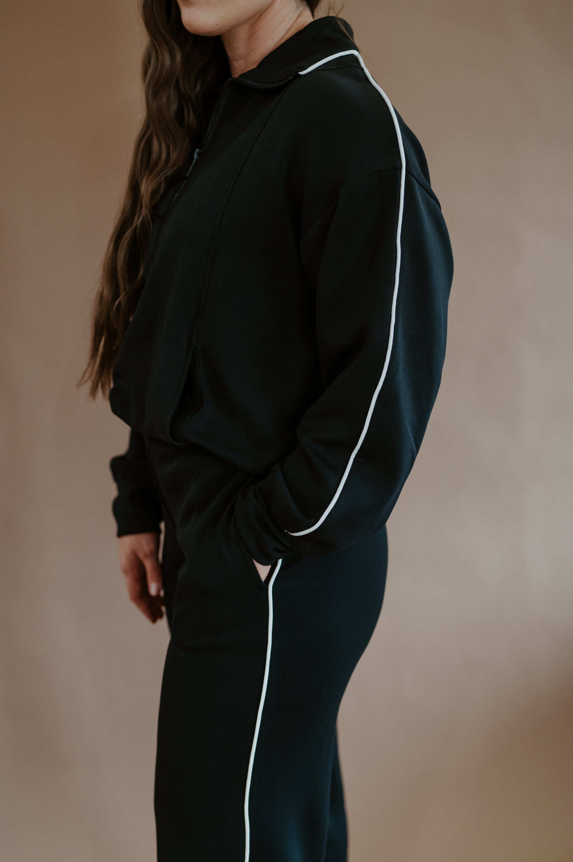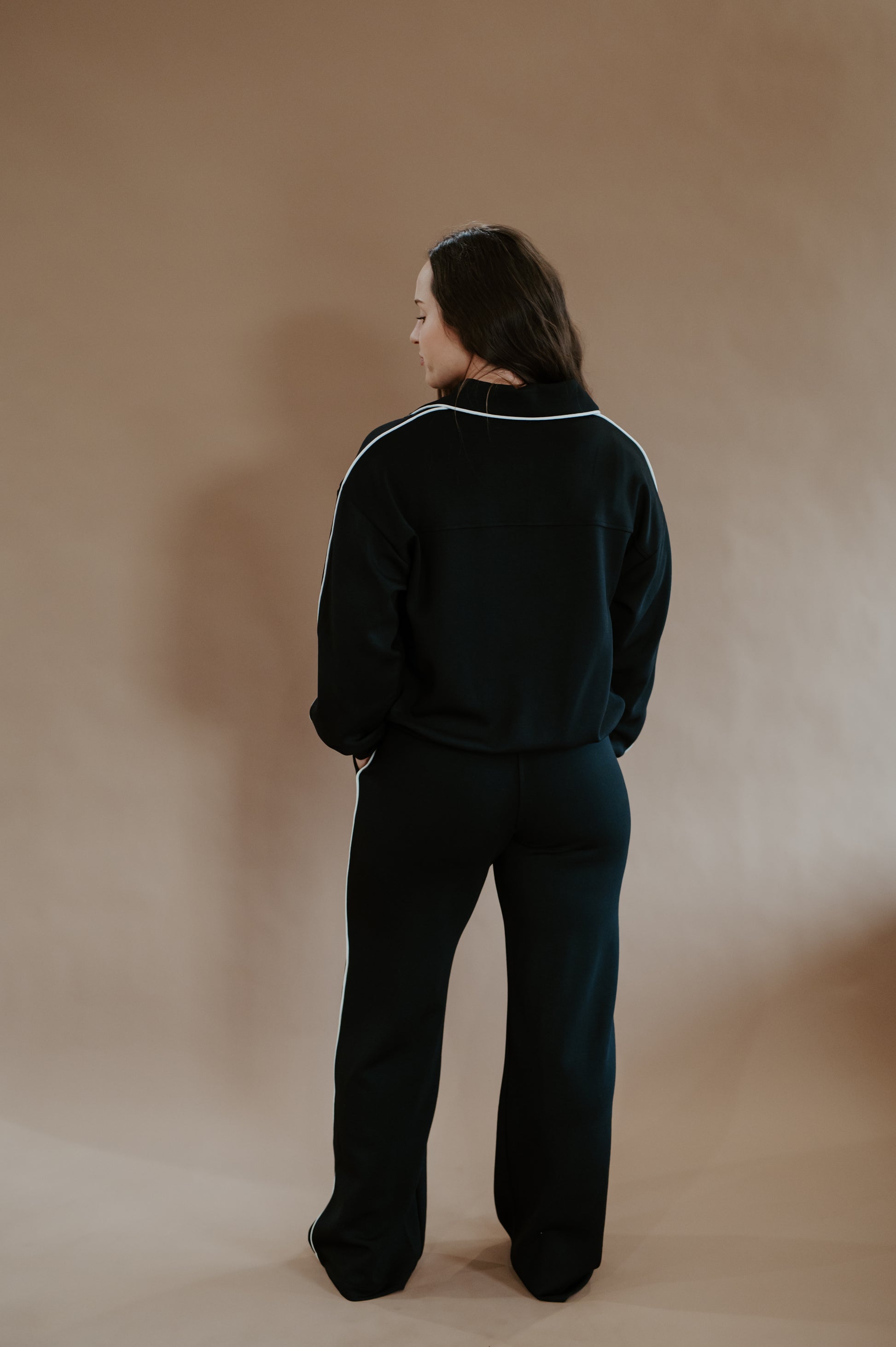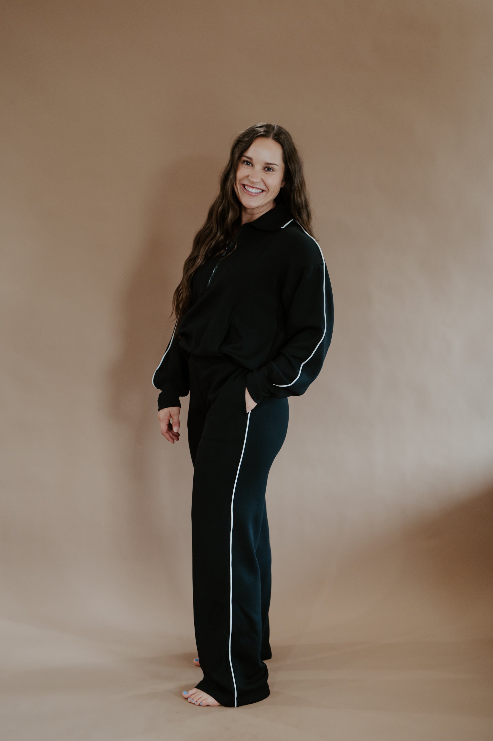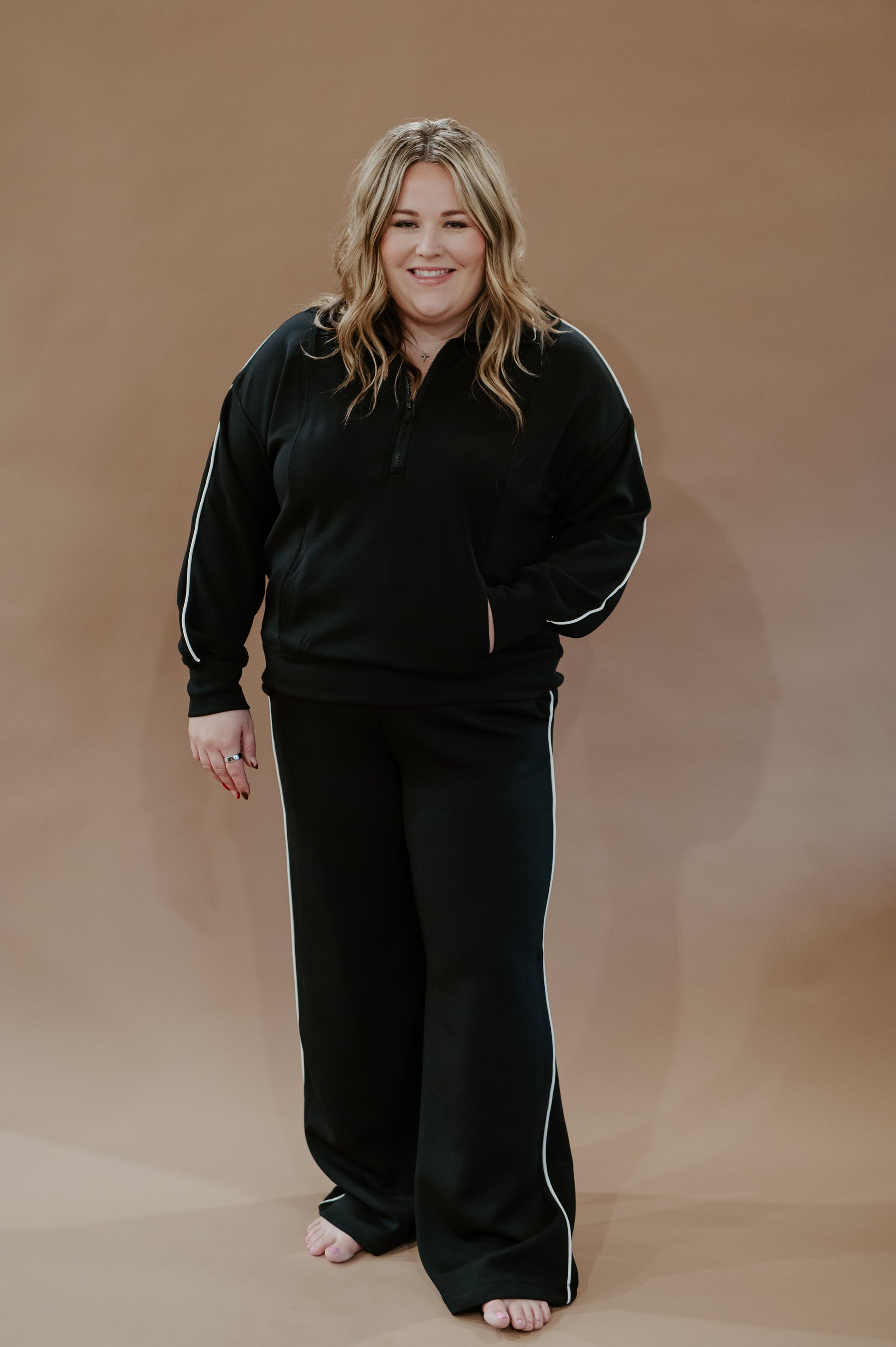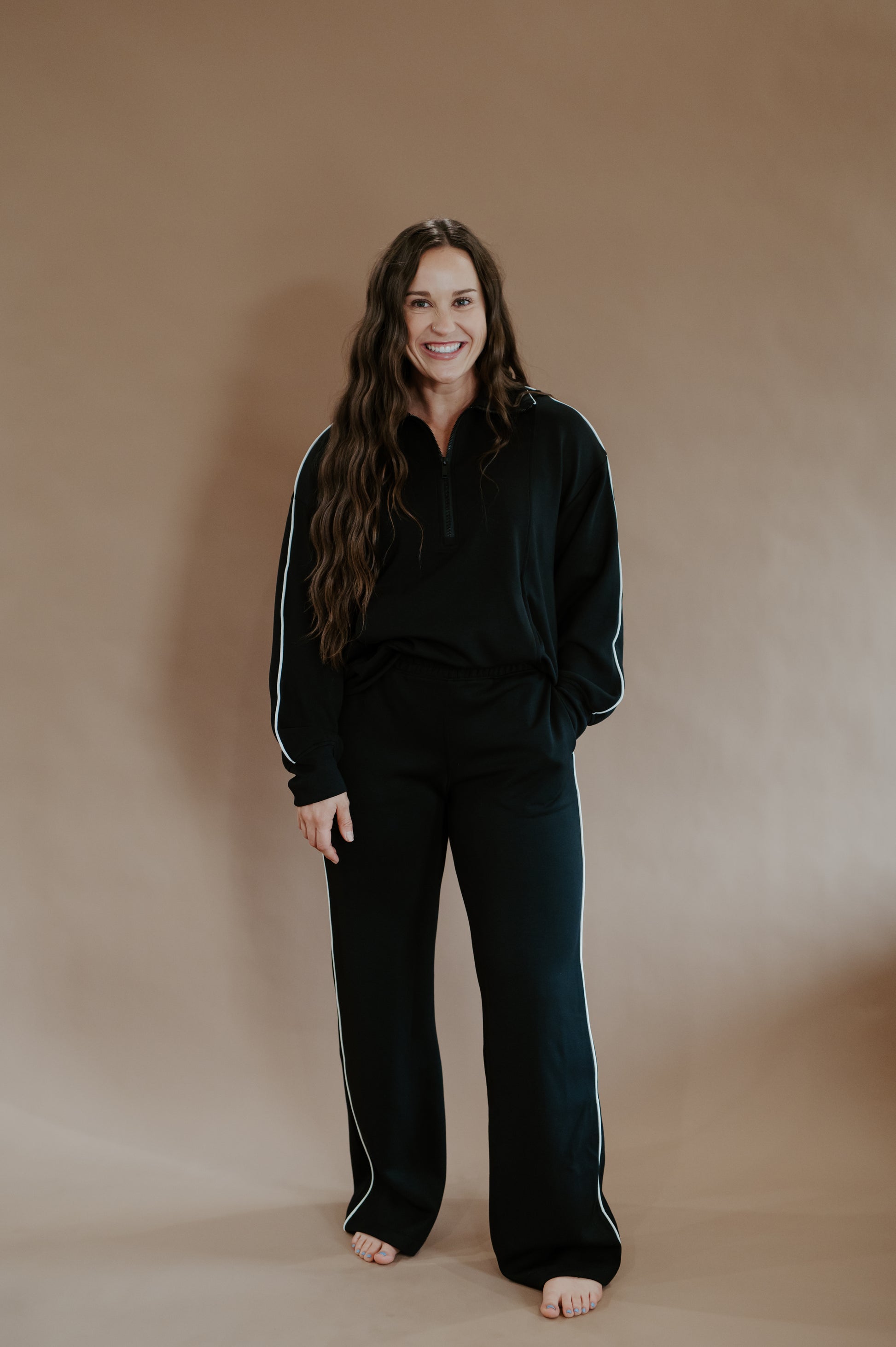 Meet your new go-to lounge-to-street set. Crafted from ultra-soft modal fabric, Piped Perfection brings effortless comfort with a sleek, elevated edge. The half-zip pullover pairs with wide-leg pants, both finished with contrast piping for that little pop of detail. Lightweight, breathable, and buttery-smooth, this set moves with you from cozy mornings to casual nights out. Sold together as a set for maximum ease and style.