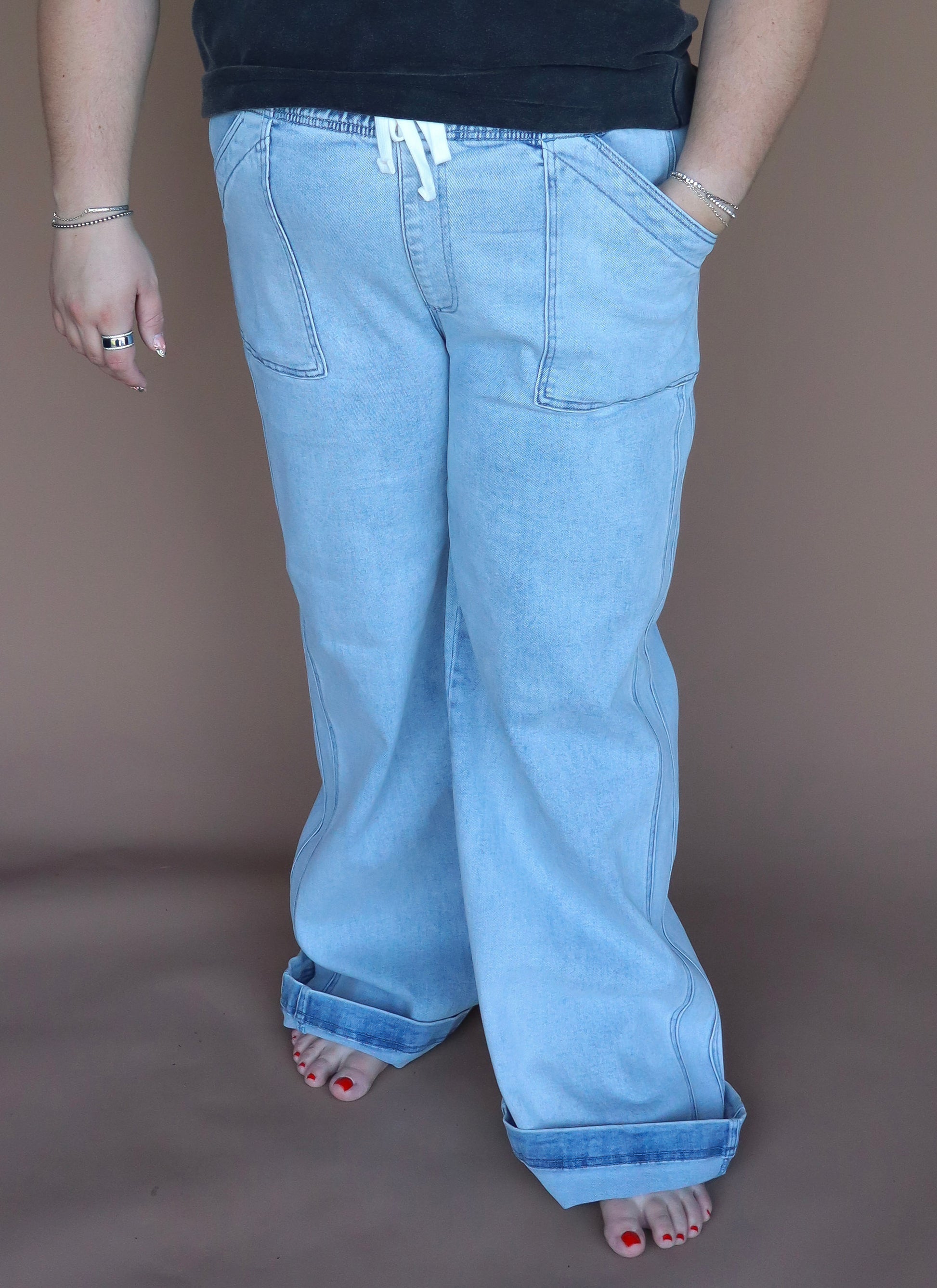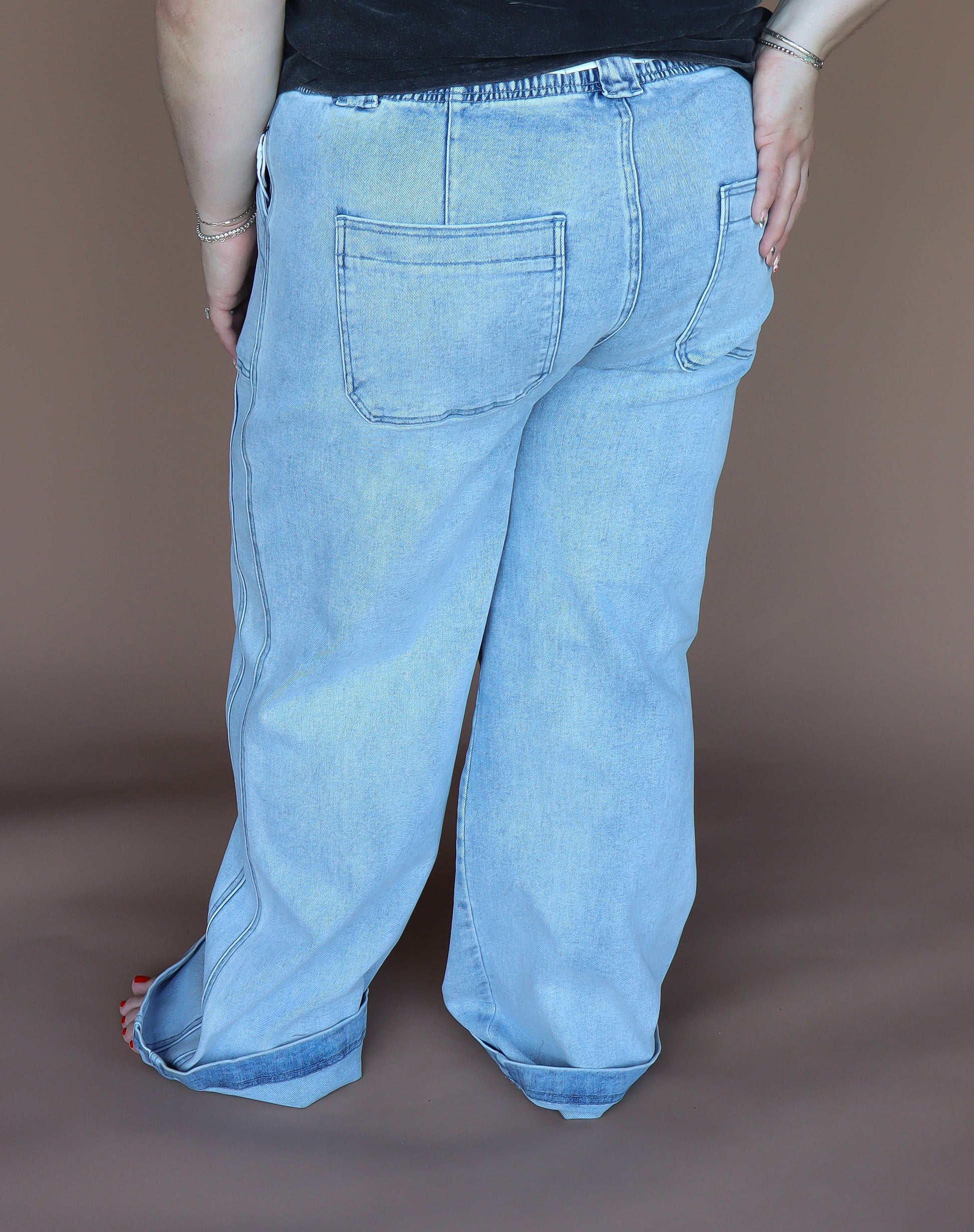 Meet Ren, your new favorite pants partner-in-crime! These light wash denim beauties feature a super-stretchy fabric that moves when you groove. The elastic waistband says "goodbye" to uncomfortable jeans forever, while the adorable tie detail adds that perfect pop of personality. Casual enough for everyday adventures but cute enough to turn heads—these pants are ready to play whenever you are!