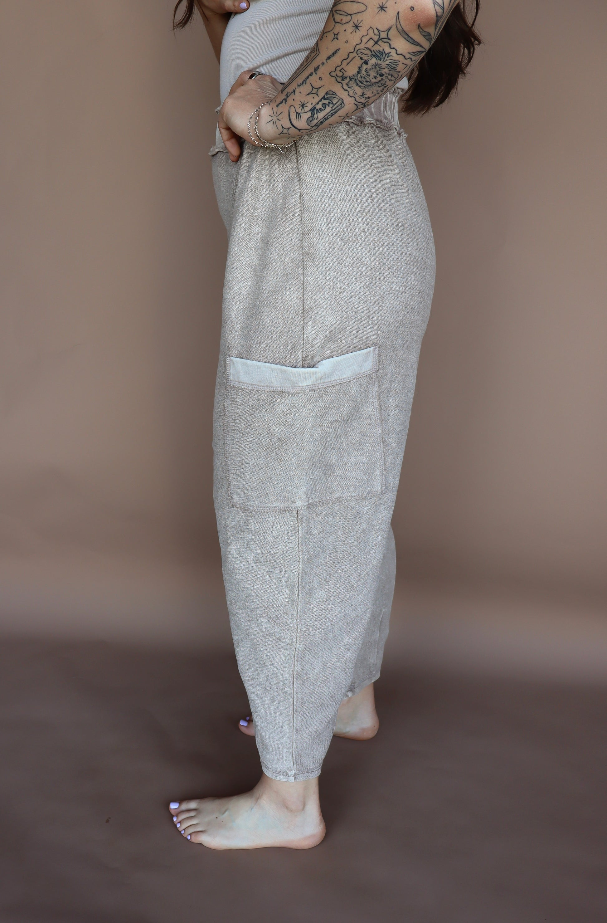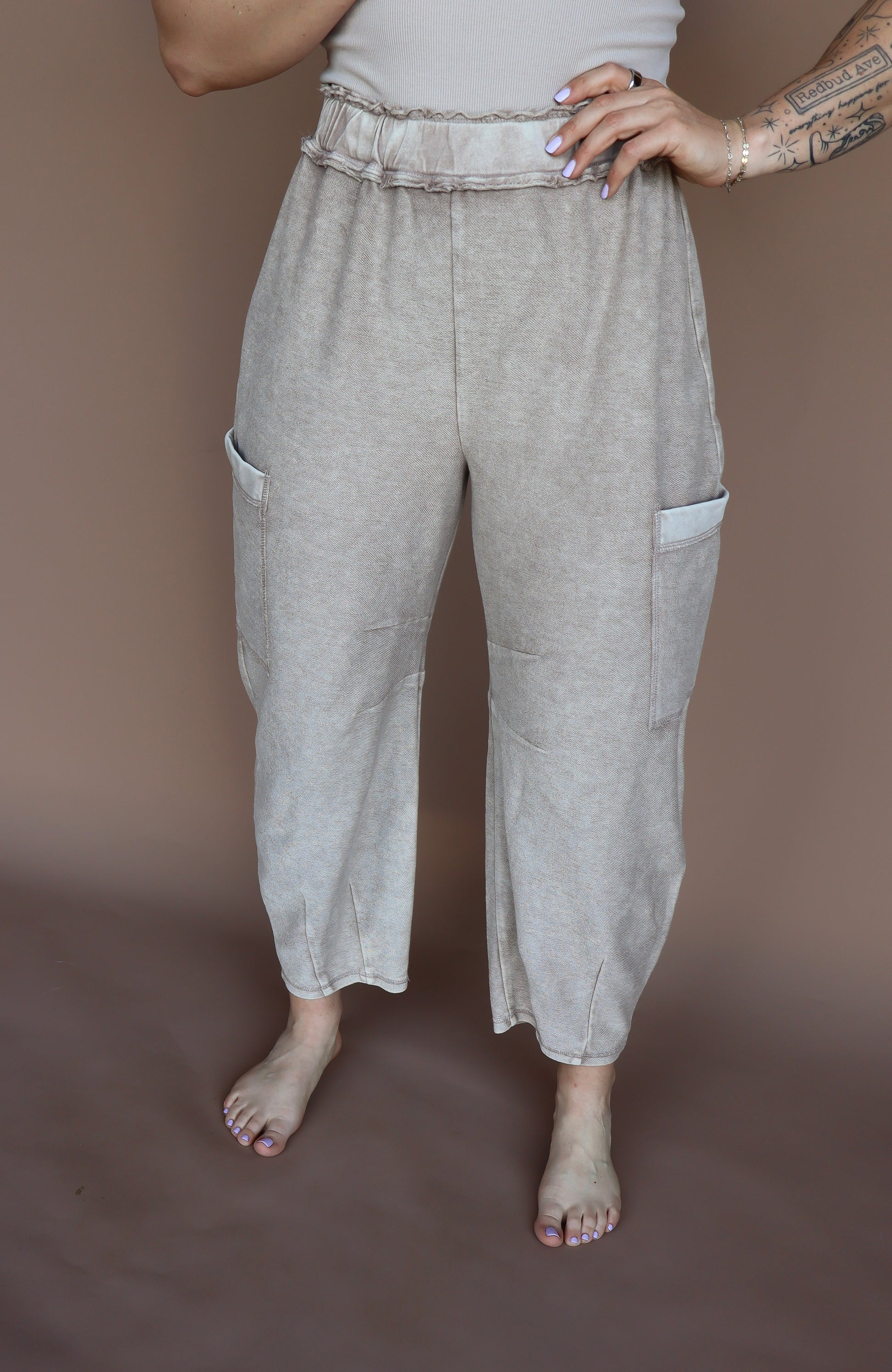 Unwind in style with the Sandy Coast lounge pants! Made of cozy cotton in a rich mocha color, these barrel-style pants offer ultimate comfort and relaxation. Perfect for lazy days or lounging by the beach, these pants are a must-have for any laid-back wardrobe. (No pants, no problems!)