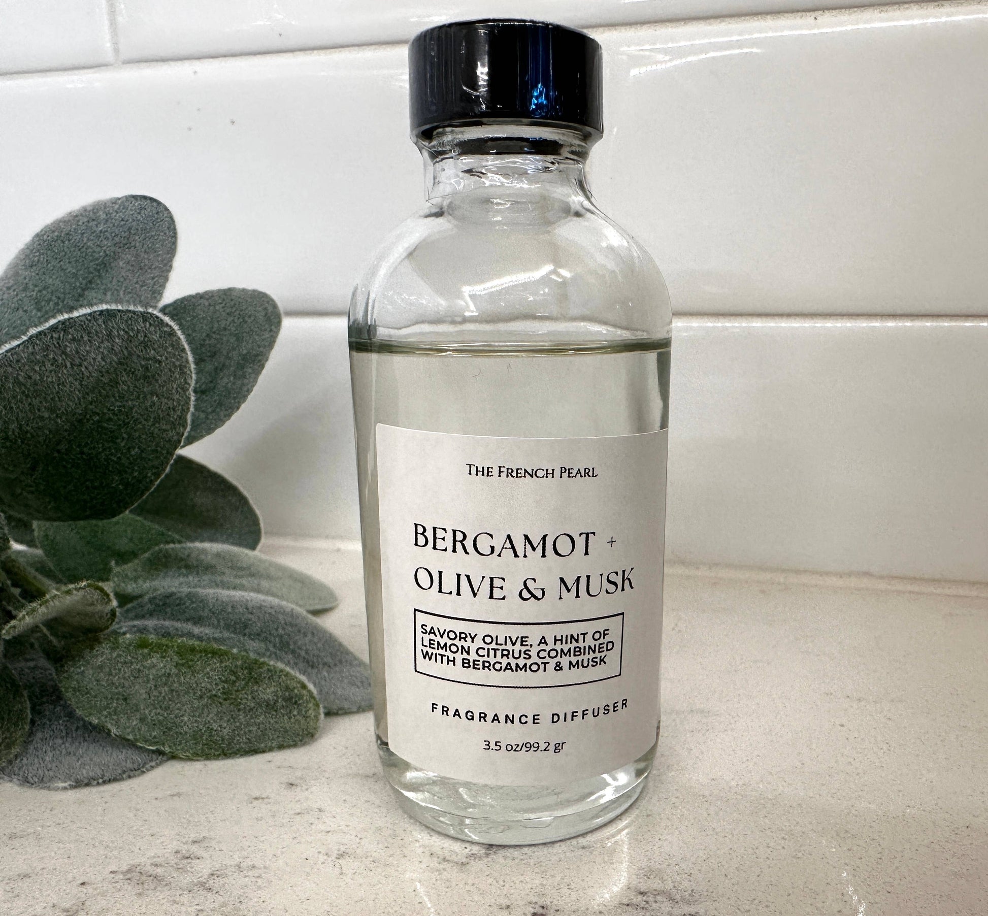 Bergamot + Olive & Musk: Savory olive, a hint of lemon citrus combined w/bergamot & musk