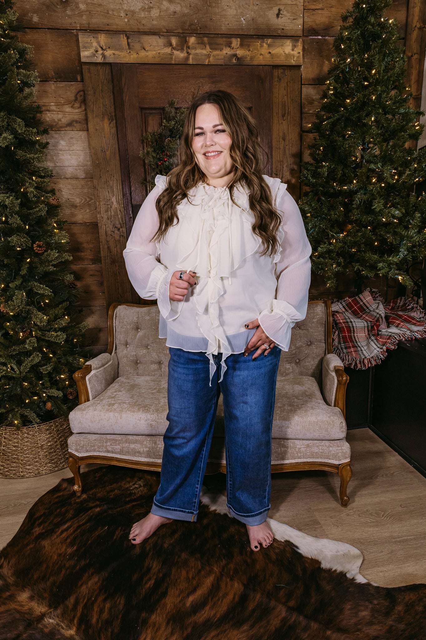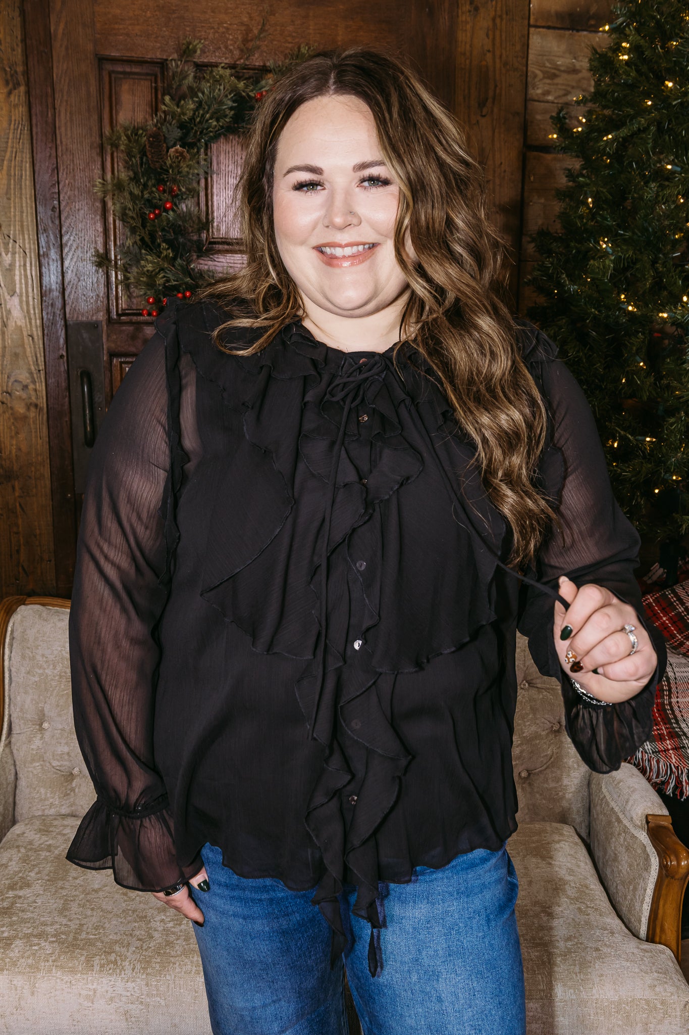 Delicate, feminine, and effortlessly elevated — the Soft Sheer top is made for those moments when you want to feel polished but still comfortable. Designed with lightweight sheer fabric, romantic ruffle detailing, and a tie-front neckline, this piece brings timeless charm with a modern touch. The flowy silhouette flatters beautifully while the sheer sleeves add just the right amount of softness.